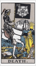 Death  หมายถึง การเปลี่ยนแปลง เกิดใหม่ เรื่องร้าย ๆ จะกลายเป็นดีนะคะ สิ่งต่าง ๆ ที่ว่าร้ายแรงแล้วจะเริ่มเปลี่ยนแปลงไปในทางที่ดีขึ้นทีละนิดบอท 1 minutes